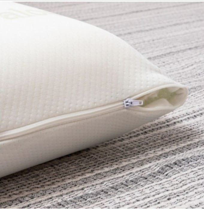 La almohada se presenta con doble funda, la exterior con cremallera y con tratamiento Aloe Vera.