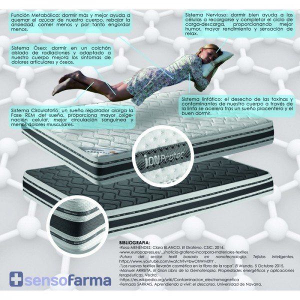 De Fabricación Nacional y realizada con núcleo interior fabricado íntegramente en un Bloque de una pieza de Viscoelástica de Alta Tecnología (material desarrollado por la nasa), de recuperación lenta, proporcionando un soporte excepcional.